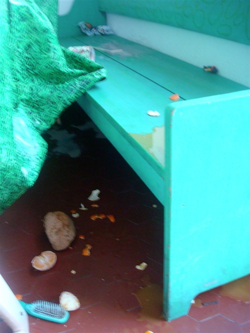 Wie das passiert ist? Da fragt man ab besten das Prinzchen und den Zoowärter. Mir selber ist es nämlich ein wenig zu schnell gegangen, als dass ich die Details rekonstruieren könnte. Es hat irgend etwas zu tun mit dem Prinzchen, das auf den Esstisch geklettert war und dem Zoowärter, der damit nicht einverstanden war.