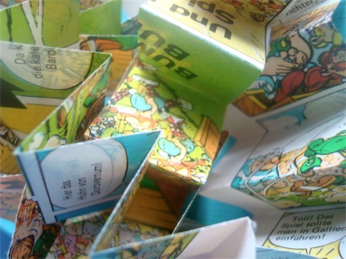 So, aber jetzt muss ich los. Die Papierstreifen sind wieder aufgetaucht, als ich nach der Kabelrolle suchte, um die Pumpe des Schwimmbeckens in Betrieb zu nehmen. Wenn ich jetzt ganz schnell zur Schule renne, dann schaffe ich es noch, Karlsson die Streifen in der grossen Pause in die Hand zu drücken und dann können wir vielleicht noch verhindern, dass die Lehrerin schimpft….