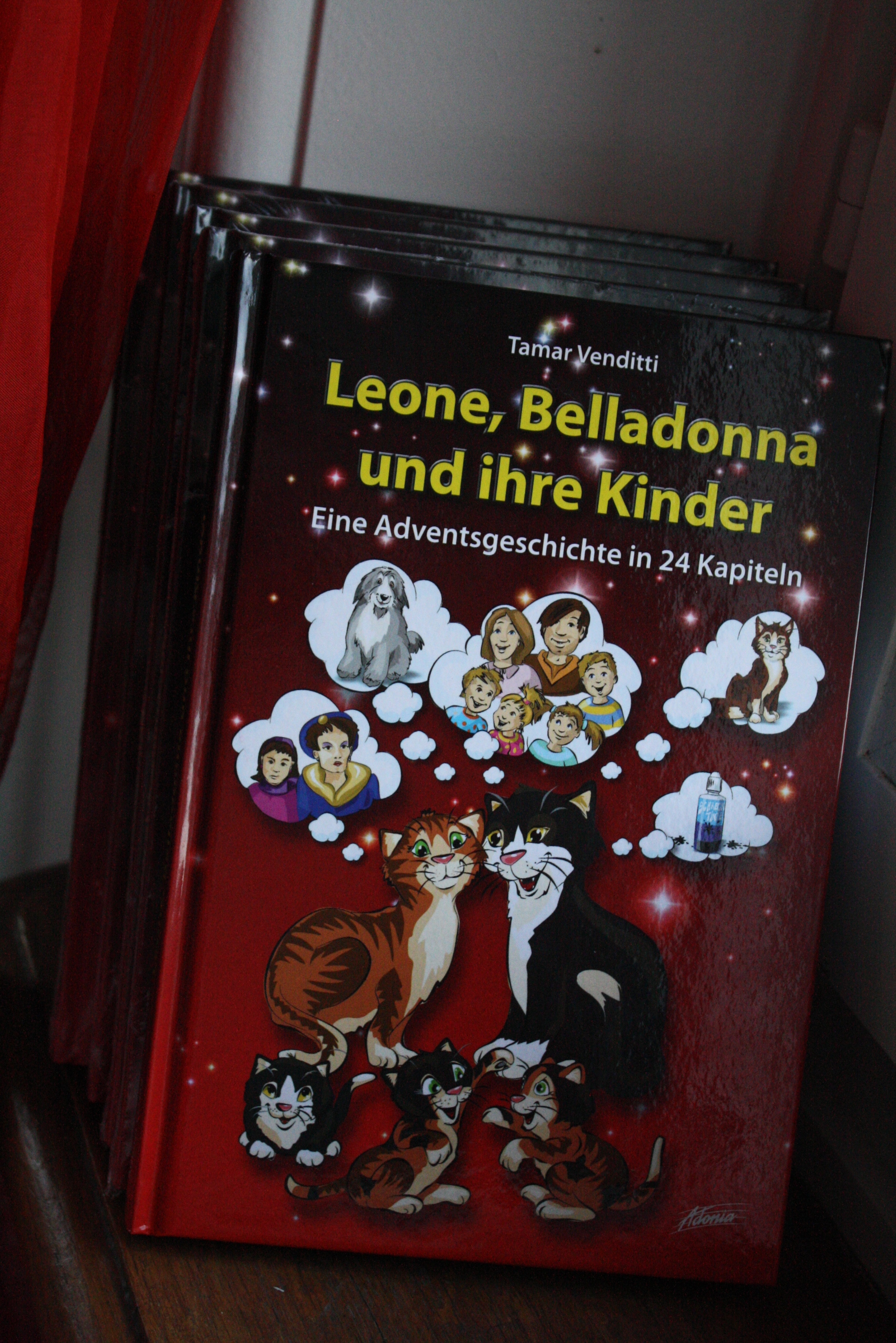 „Leone & Belladonna – Eine Adventsgeschichte in 24 Kapiteln“ ist ein Buch, welches Kinder ab ca. 3 Jahren durch die Adventszeit begleitet. Kater Leone möchte herausfinden, warum die Menschen auf einmal verrückt spielen, aber weil keiner seiner Freunde eine überzeugende Antwort hat, begibt er sich auf eine abenteuerliche Reise auf der Suche nach des Rätsels Lösung. Unterwegs begegnet er Belladonna, einer reizenden aber auch ziemlich frechen jungen Landkatze. Ob es den beiden gelingt, herauszufinden was es mit „Wöldnuchten“ – oder heisst es „Weltnüchtern“? – auf sich hat, liest man am besten selbst.